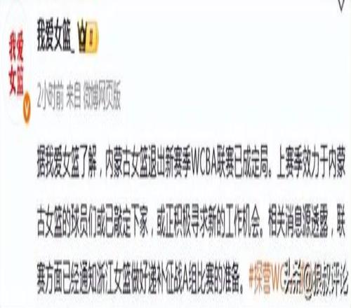 北京时间10月31日,根据媒体人“我爱女篮”的报道,内蒙古女篮退出新赛季WCBA联赛已成定局。上赛季效力于内蒙古女篮的球员们或已敲定下家,或正积极寻求新的工作机会。相关消息源透露,联赛方面已经通知浙江女篮做好递补征战A组比赛的准备。
