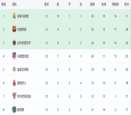 在本轮的另外一场比赛中,巴萨在客场4-2击败塞尔塔。在目前的积分榜上,虽然皇马12战积31分,依然领先巴萨3分,但是在净胜球这一数据上,巴萨17个,超过了皇马的16个。接下来皇马四个客场对手分别为埃尔切、奥林匹亚科斯、赫罗纳和毕尔巴鄂竞技。本赛季西甲争冠的悬念,再度开启!